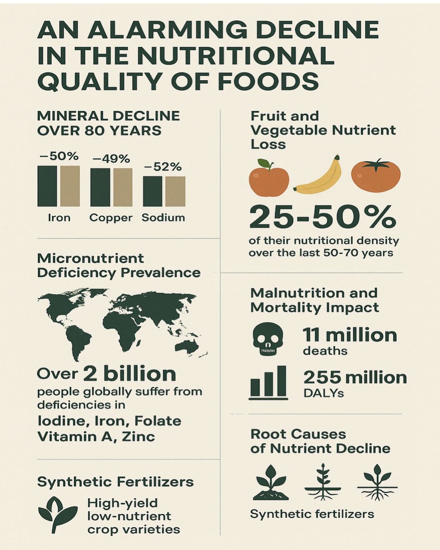 Decades of chemical farming, GMO processing, and soil depletion have stripped our diet of its vital nutrients. Research shows our food has lost up to 80% of its nutritional density. Your body is screaming for the raw building blocks it needs to produce hormones. You are starving at a cellular level, even with a full plate. Our ancestors didn't have "Low T"—they lived with vitality well into their 90s because they stayed in sync with nature’s most potent compounds.